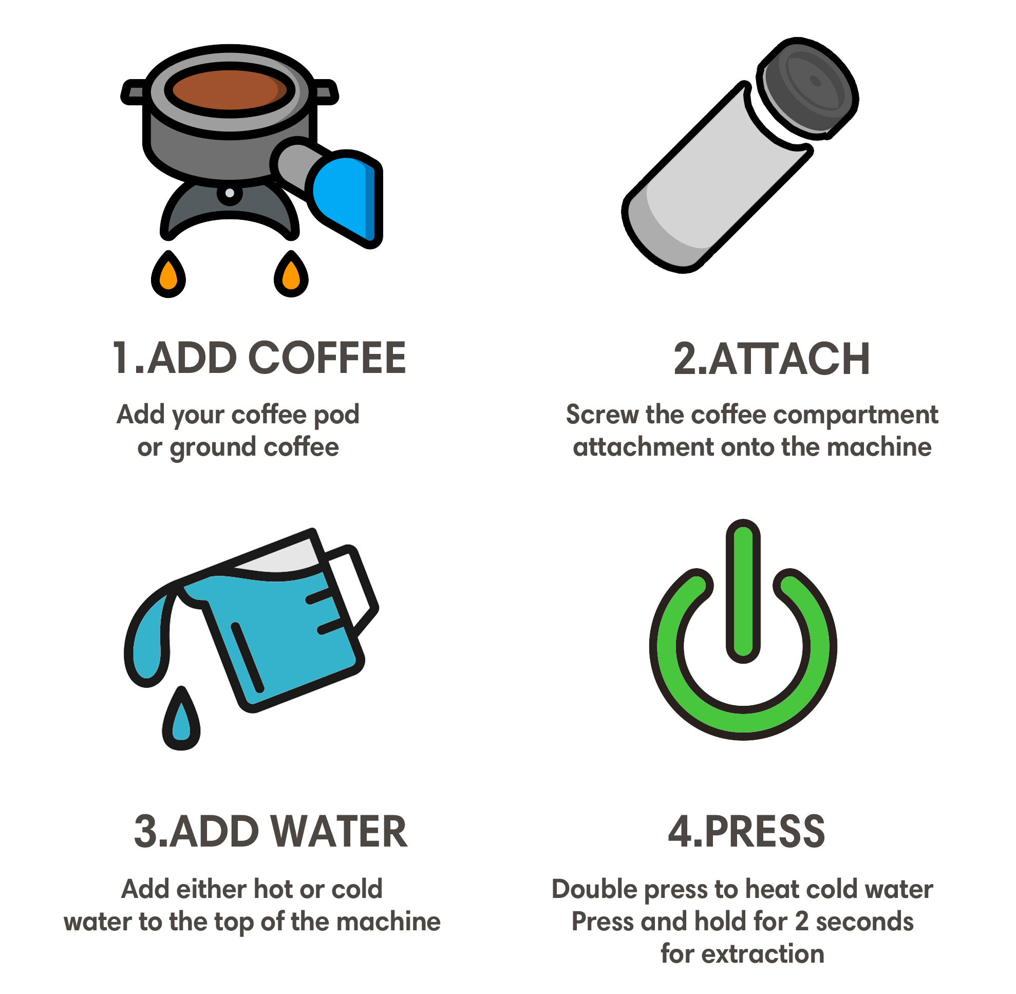 Put your coffee capsule or coffee powder into the Infuser and push the button. Our Strikingk™ Portable Espresso Machine keeps your coffee powder separate from the brewed liquid, ensuring a consistent smooth taste. With a simple push, your coffee strains perfectly into the coffee cup.